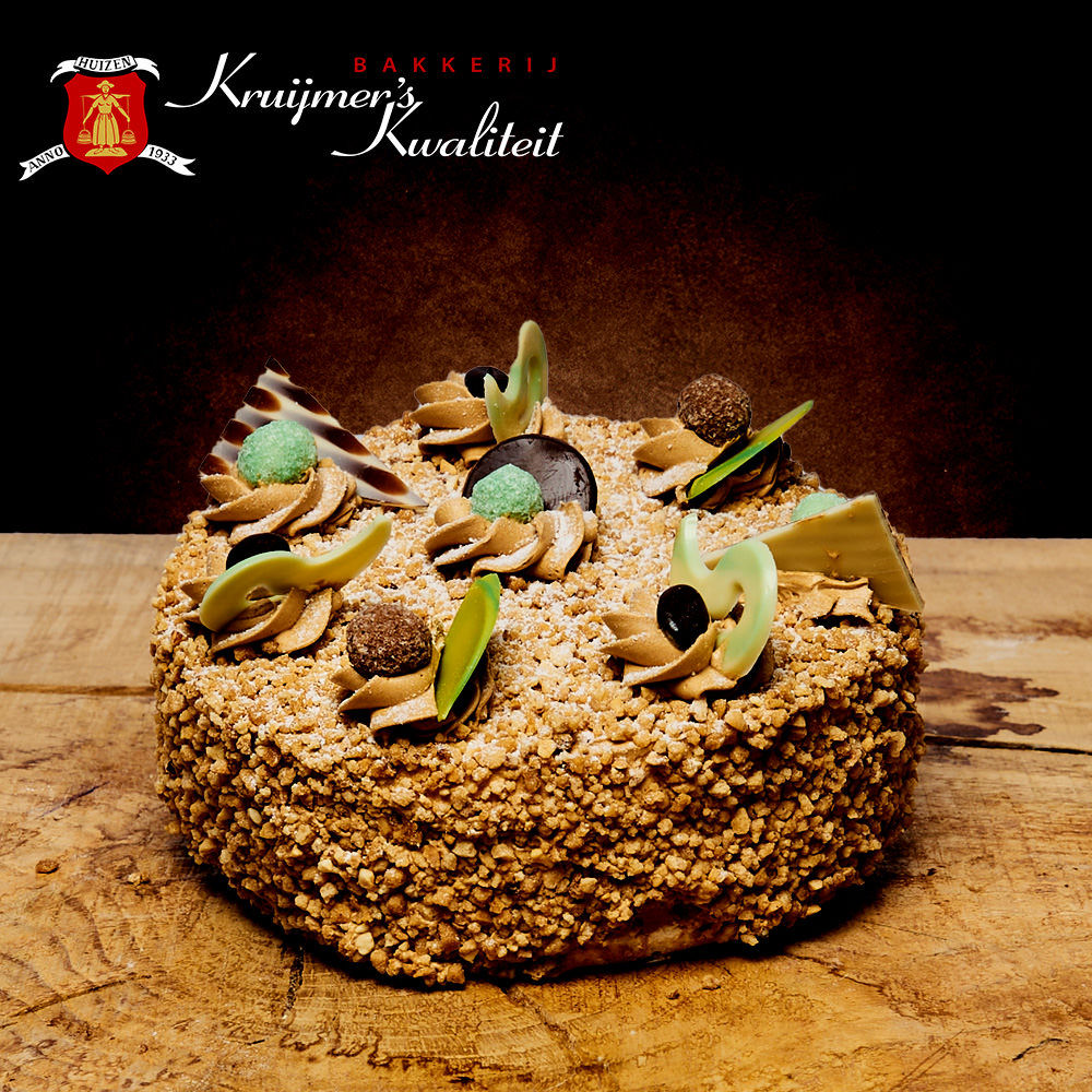 Onze chipolataschnit is een van onze best verkochte schnitt, de taart is gevuld met zwitserse room, vruchten, rum rozijnen en bitterkoekjes. De bovenkant is bedekt met een laagje marsepein en laagje fondant.